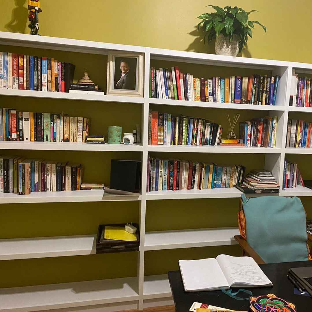 Custom made wall to wall bookshelf to suit client’s brief and budget.